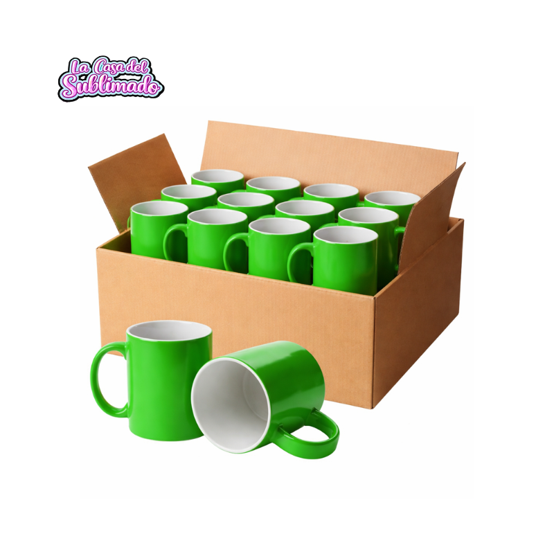 La caja con 36 tazas para sublimar de 11 oz en color verde neón es ideal para emprendedores y negocios de personalización que buscan un producto llamativo, diferente y con alta demanda. Su color vibrante permite crear diseños que destacan a simple vista, perfectos para regalos personalizados, promociones y ventas al público final ☕🔥.
