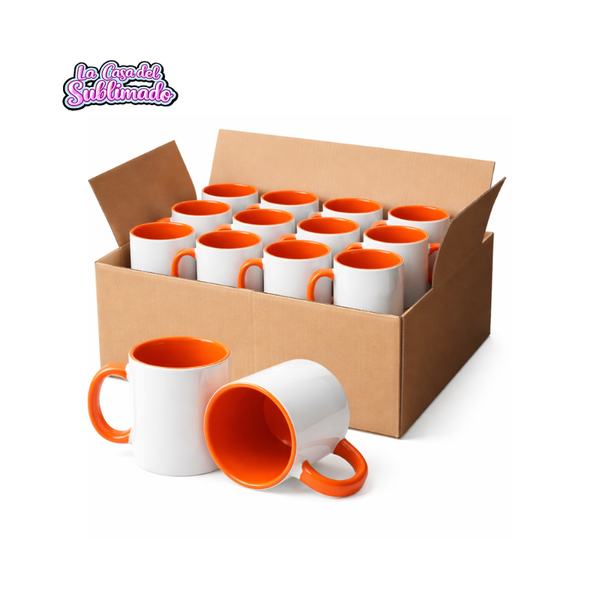 Caja con 36 Tazas Bicolor Naranja Sublimables 11 oz